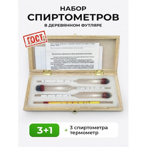 Набор ареометров АСП-3 (0-40, 40-70, 70-100) + термометр (в деревянной коробке) ГОСТ